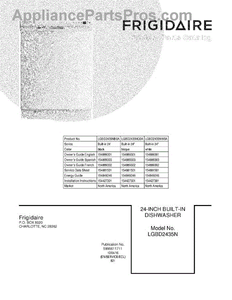 Parts for Frigidaire LGBD2435NW0A: 01 - Cover Parts
