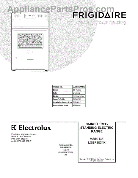 Parts for Frigidaire LGEF3031KMC: 01 - Cover Parts