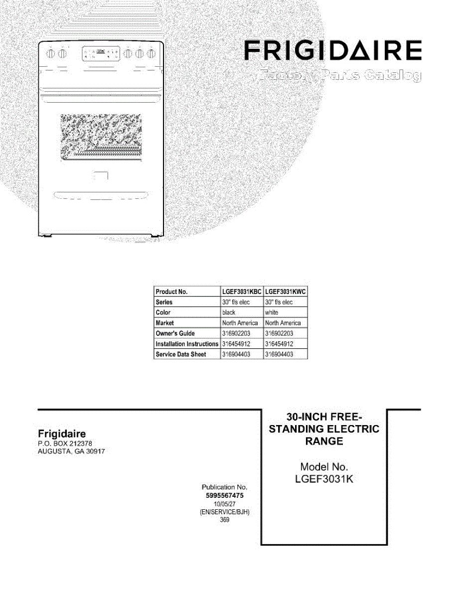 Parts for Frigidaire LGEF3031KWC: 01 - Cover Parts