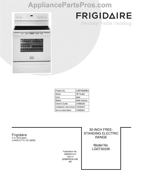 Parts for Frigidaire LGEF3033KBH: 01 - Cover Parts