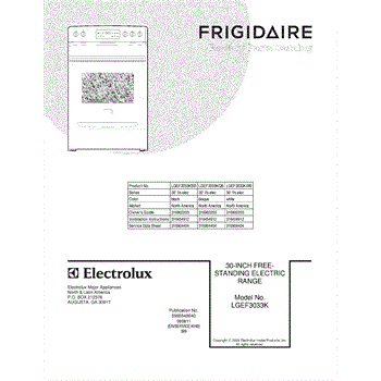Parts for Frigidaire LGEF3033KQB: 01 - Cover Parts