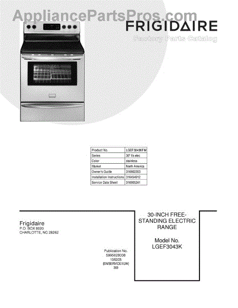 Parts for Frigidaire LGEF3043KFM: 01 - Cover Parts