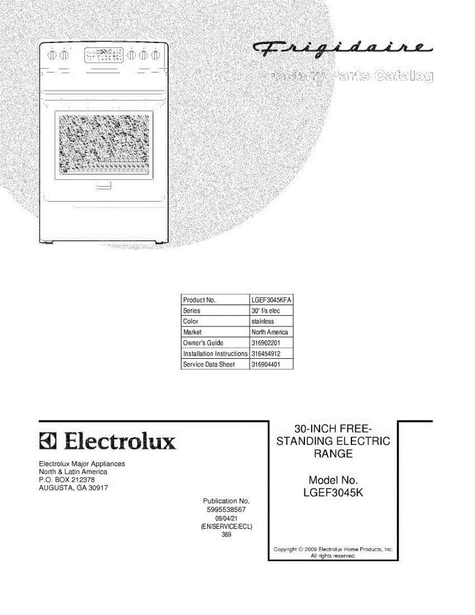 Parts for Frigidaire LGEF3045KFA: 01 - Cover Parts