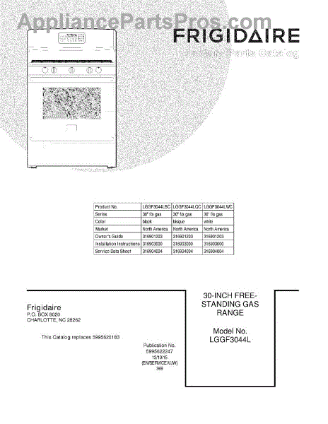 Parts for Frigidaire LGGF3044LQC: 01 - Cover Parts