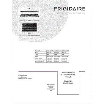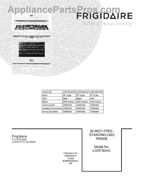 Parts for Frigidaire LGGF3044LWA: 01 - Cover Parts