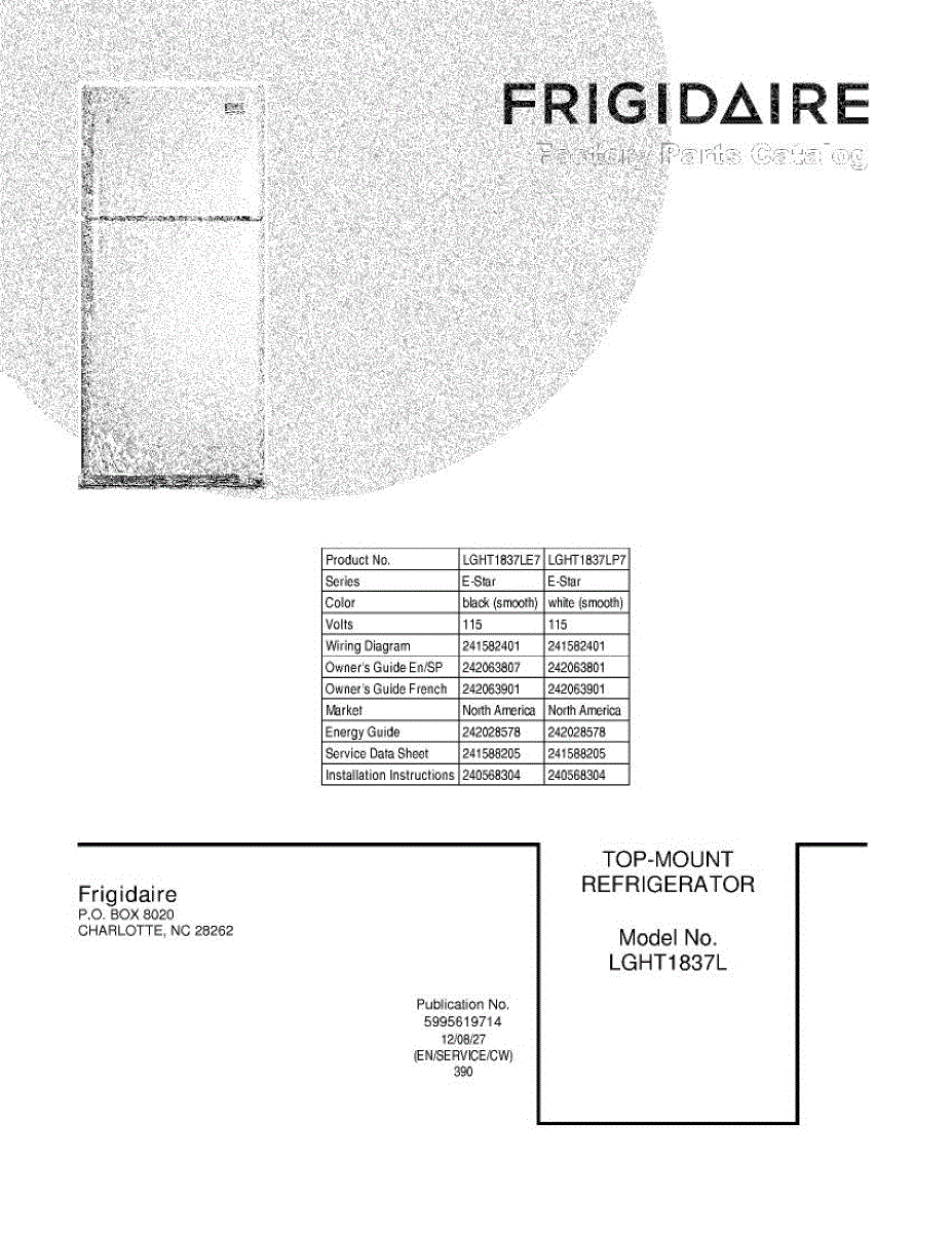Parts for Frigidaire LGHT1837LP7: 01 - Cover Parts