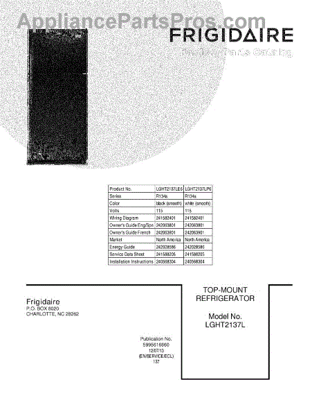 Parts for Frigidaire LGHT2137LE6: 01 - Cover Parts