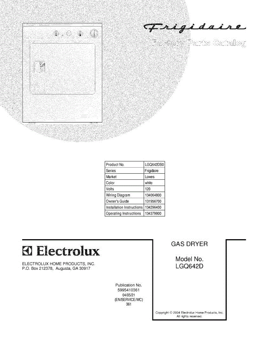 Parts for Frigidaire LGQ642DS0: 01 - Cover Parts