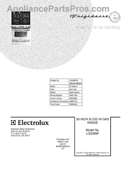 Parts for Frigidaire LGS389FEA: 01 - Cover Parts