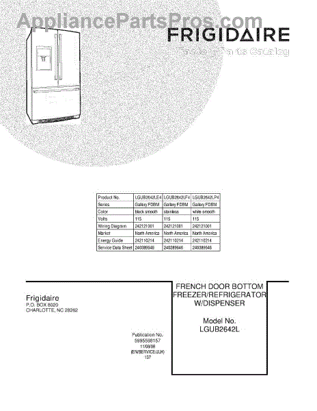 Parts for Frigidaire LGUB2642LE4: 01 - Cover Parts