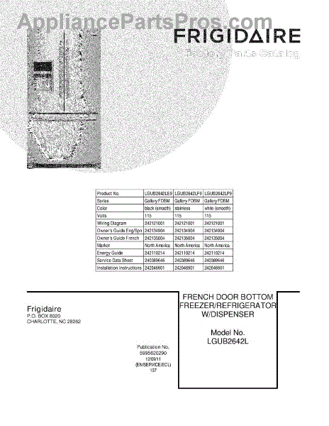 Parts for Frigidaire LGUB2642LE9: 01 - Cover Parts
