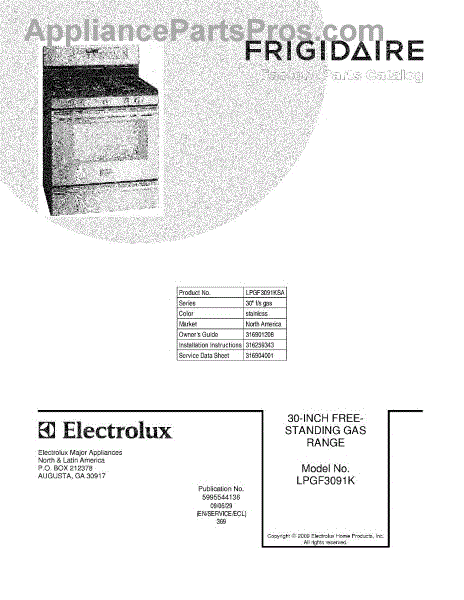 Parts for Frigidaire LPGF3091KSA: 01 - Cover Parts