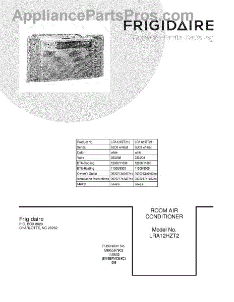 Parts for Frigidaire LRA12HZT210: 01 - Cover Parts