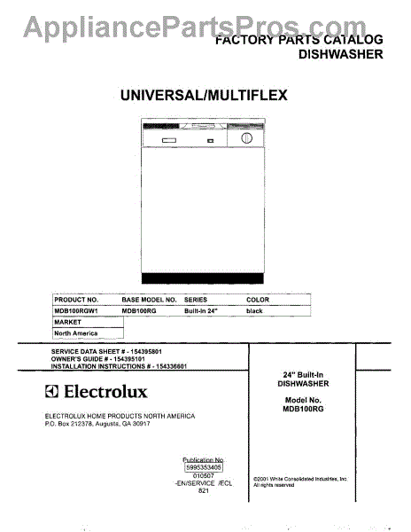 Parts for Frigidaire MDB100RGW1: 01 - Cover Parts