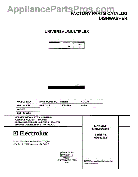 Parts for Frigidaire MDB122LBS1: 01 - Cover Parts