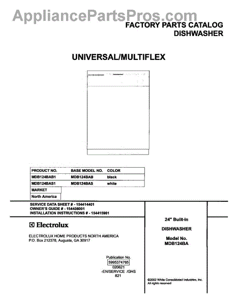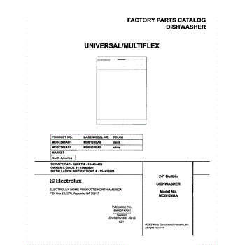 Parts for Frigidaire MDB124BAB1: 01 - Cover Parts