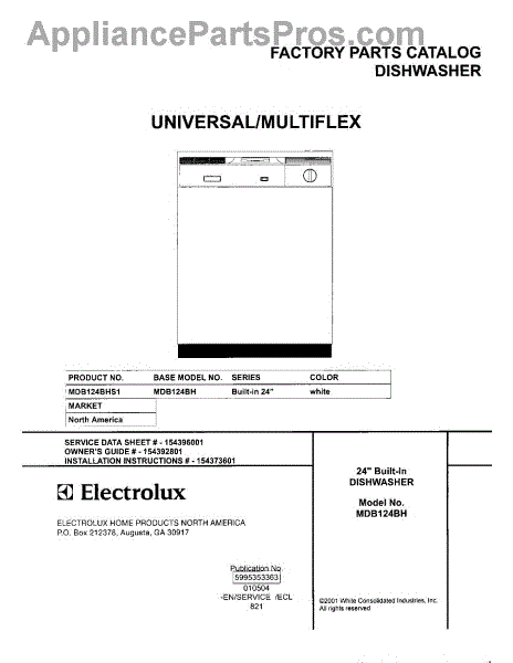 Parts for Frigidaire MDB124BHS1: 01 - Cover Parts
