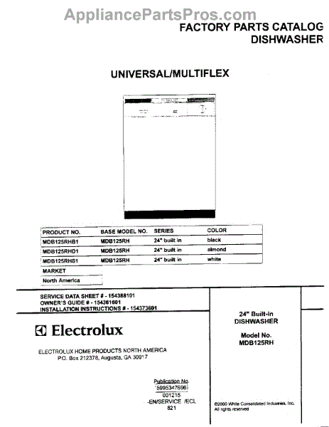 Parts for Frigidaire MDB125RHS1: 01 - Cover Parts