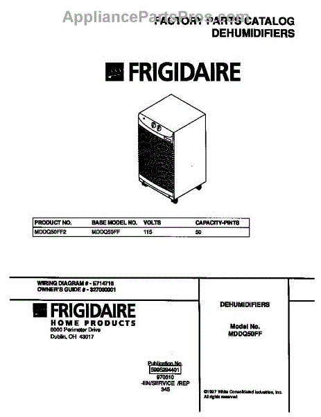 Frigidaire Dehumidifier Parts