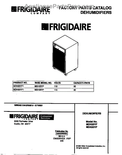Parts for Frigidaire MDH30YF1: 01 - Cover Parts
