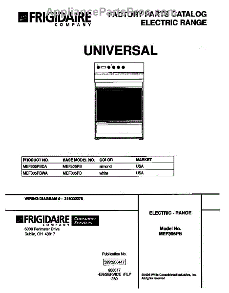 Parts for Frigidaire MEF305PBWA: 01 - Cover Parts