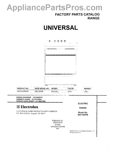 Parts for Frigidaire MEF305PBWM: 01 - Cover Parts