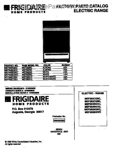 Parts for Frigidaire MEF352BGDD: 01 - Cover Parts
