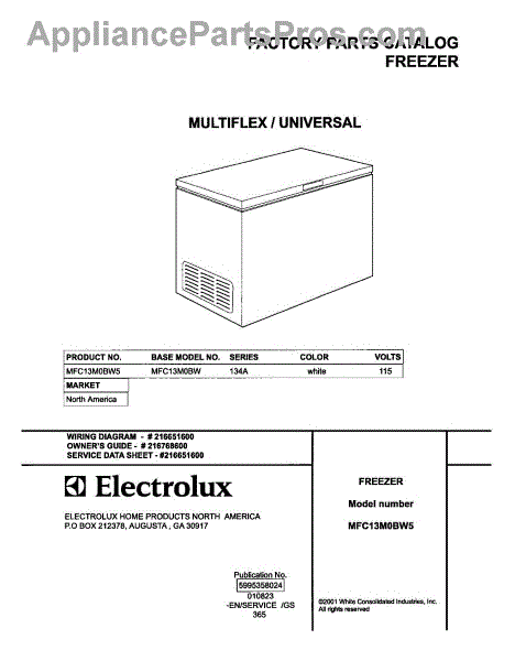 Parts for Frigidaire MFC13M0BW5: 01 - Cover Parts