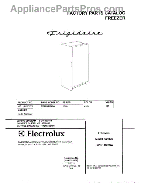 Parts for Frigidaire MFU14M2GW5: 01 - Cover Parts