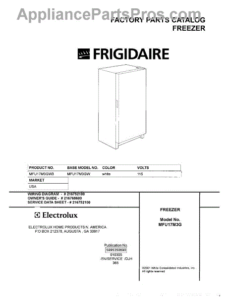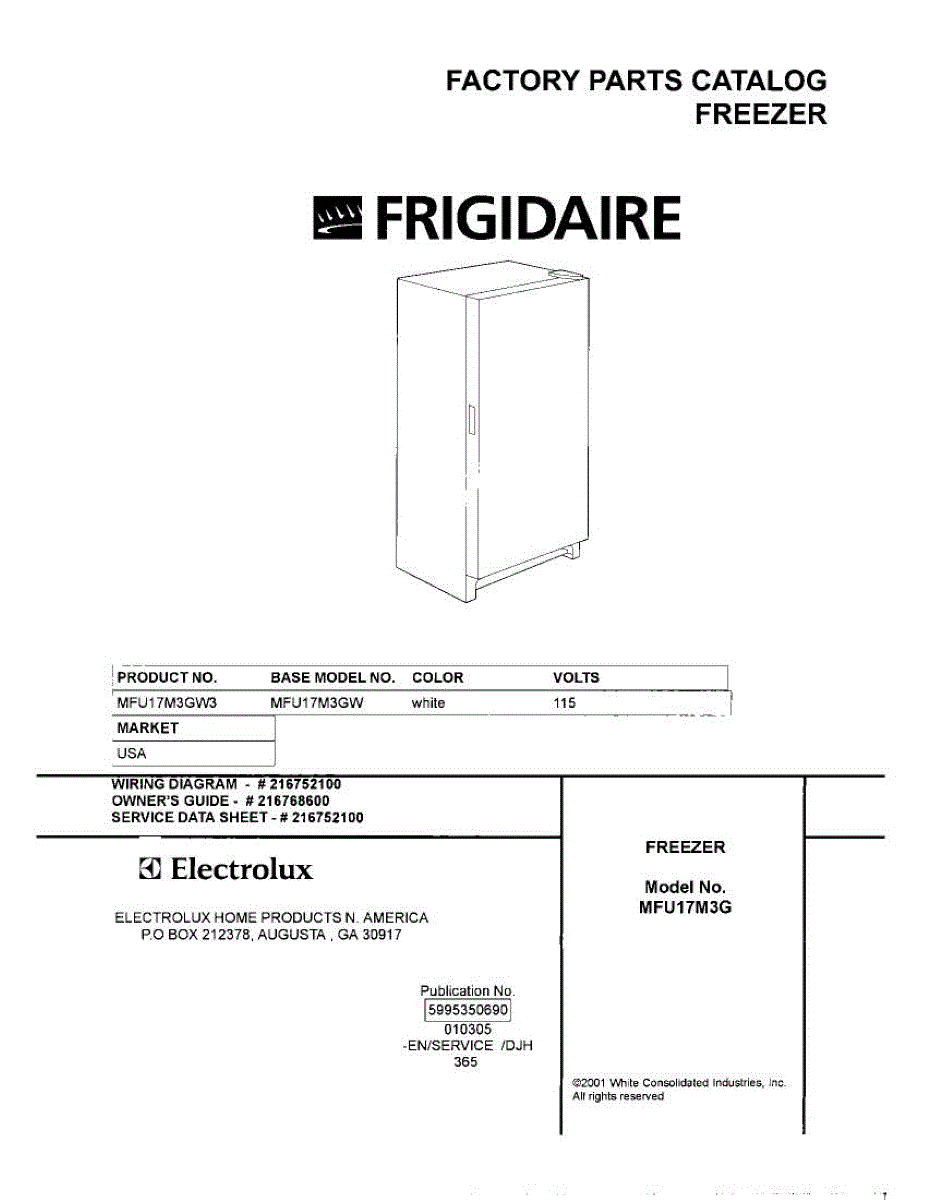Parts for Frigidaire MFU17M3GW3: 01 - Cover Parts