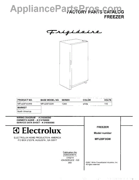 Parts for Frigidaire MFU20F3GW9: 01 - Cover Parts