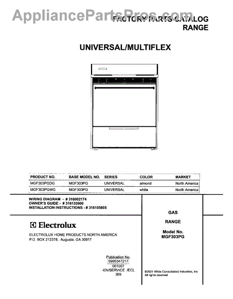 Parts for Frigidaire MGF303PGDG: 01 - Cover Parts