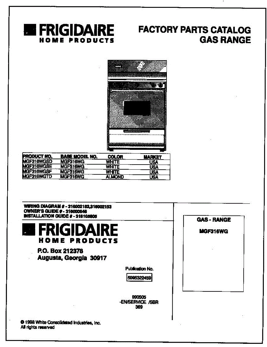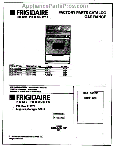 Parts for Frigidaire MGF316WGSE: 01 - Cover Parts