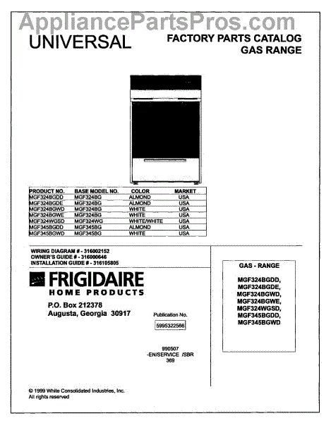 Parts for Frigidaire MGF324WGSD: 01 - Cover Parts