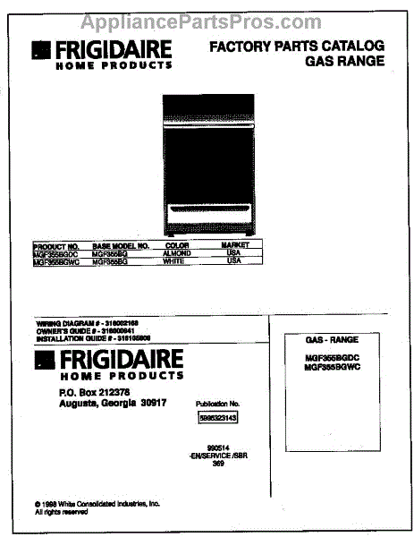 Parts for Frigidaire MGF355BGWC: 01 - Cover Parts