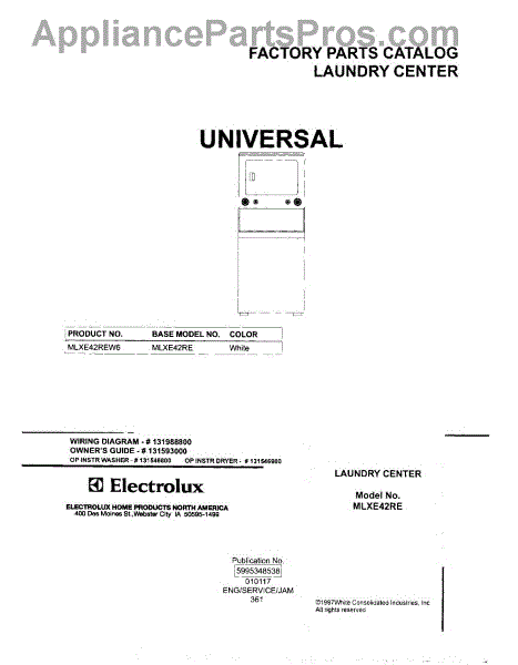 Parts for Frigidaire MLXE42REW6: 01 - Cover Parts
