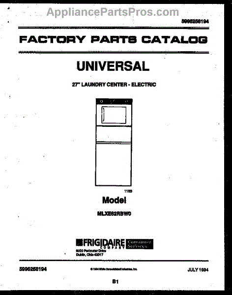 Parts for Frigidaire MLXE62RBWL0: 01 - Cover Parts