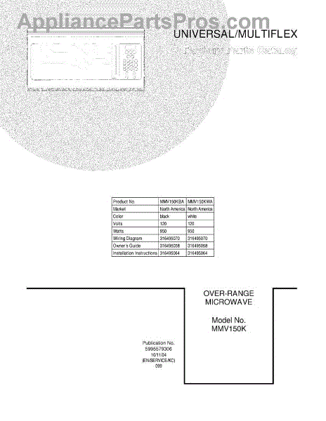 Parts for Frigidaire MMV150KWA: 01 - Cover Parts
