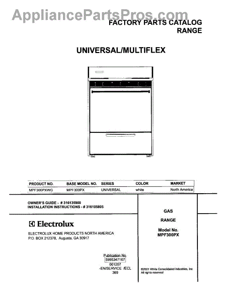 Parts for Frigidaire MPF300PXWG: 01 - Cover Parts