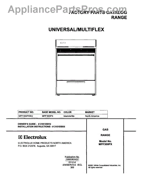 Parts for Frigidaire MPF300PXWJ: 01 - Cover Parts