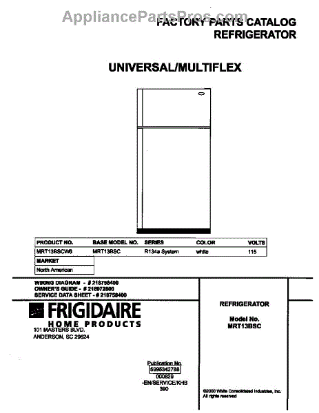 Parts for Frigidaire MRT13BSCW6: 01 - Cover Parts