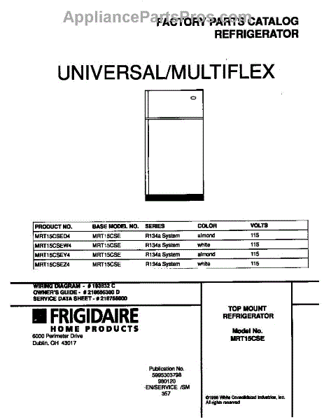 Parts for Frigidaire MRT15CSEW4: 01 - Cover Parts
