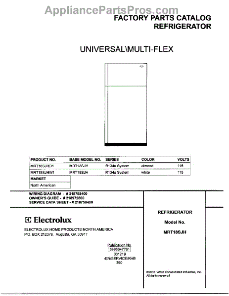 Parts for Frigidaire MRT18SJHW1: 01 - Cover Parts