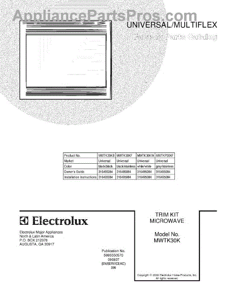 Parts for Frigidaire MWTK30KW: 01 - Cover Parts
