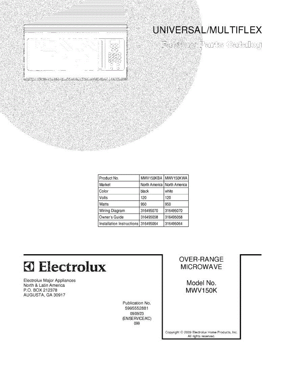 Parts for Frigidaire MWV150KWA: 01 - Cover Parts