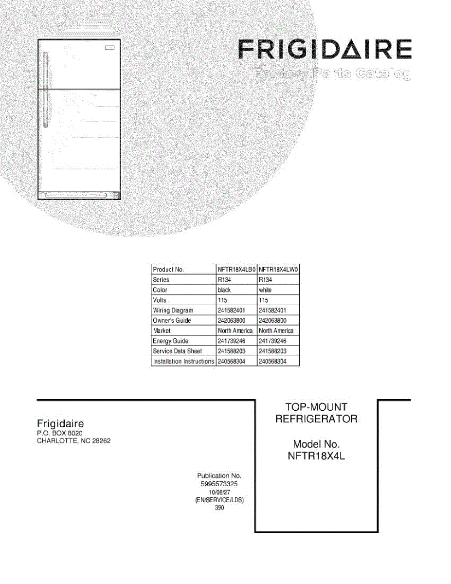 Parts for Frigidaire NFTR18X4LW0: 01 - Cover Parts
