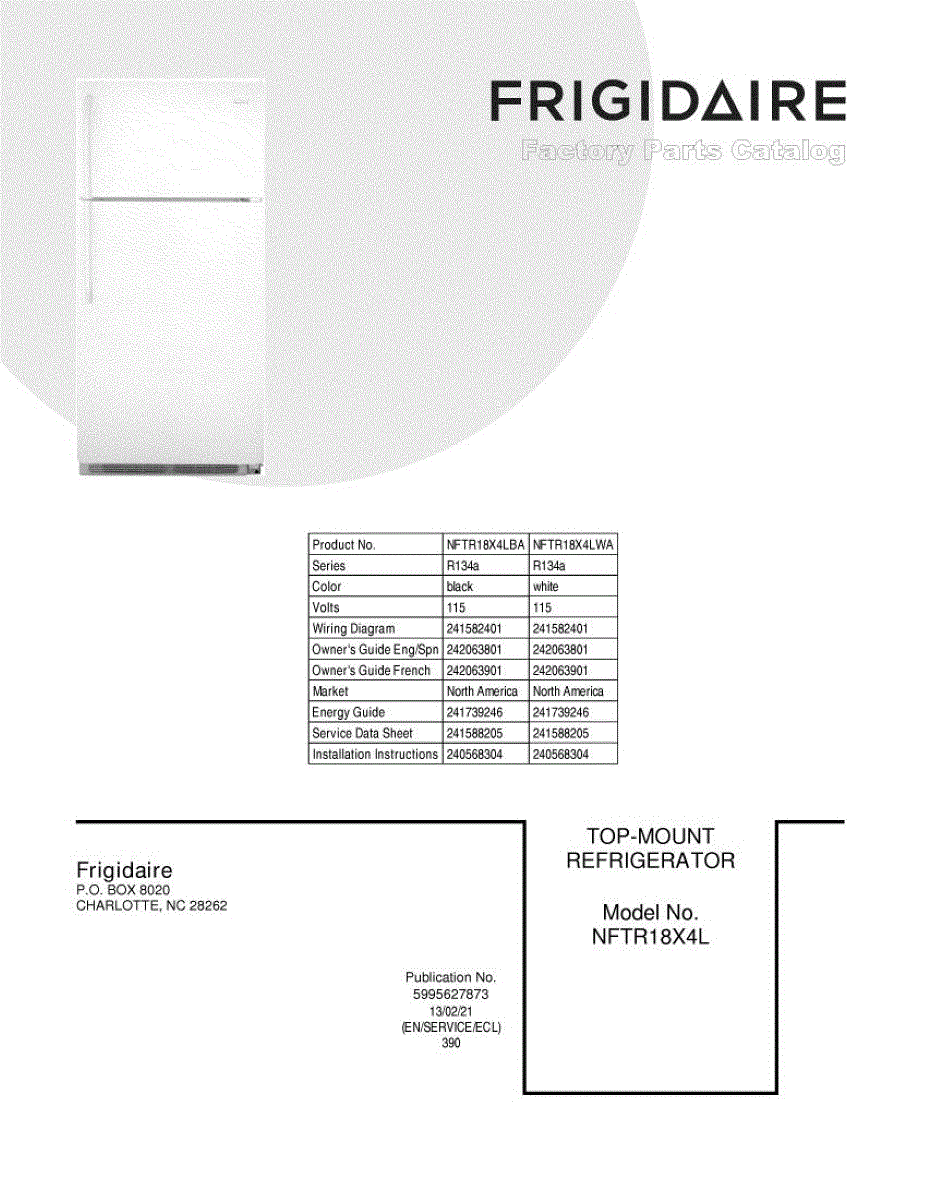 Parts for Frigidaire NFTR18X4LWA: 01 - Cover Parts