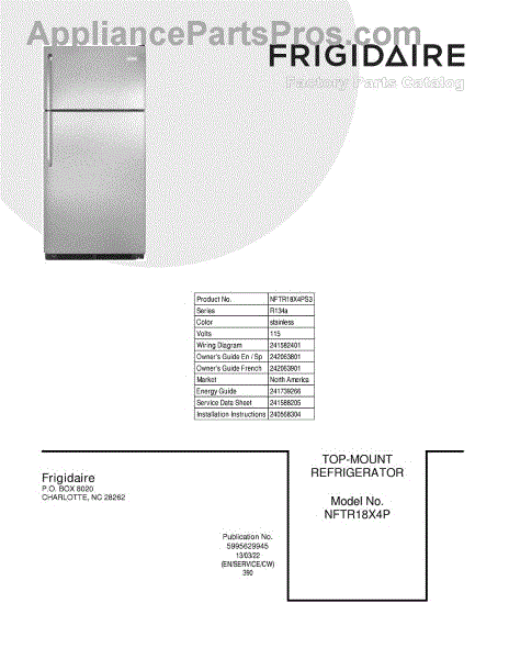 Parts for Frigidaire NFTR18X4PS3: 01 - Cover Parts