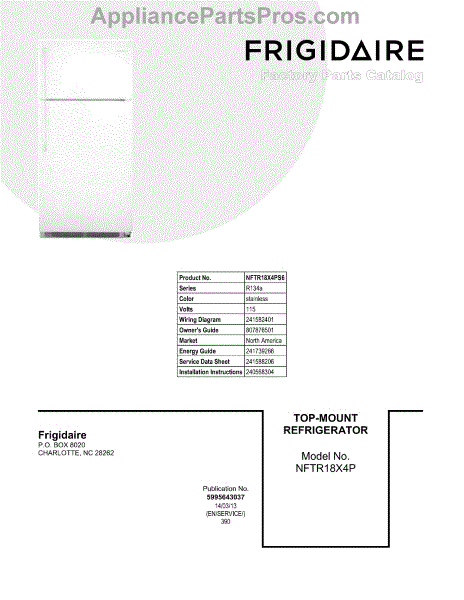 Parts for Frigidaire NFTR18X4PS6: 01 - Cover Parts