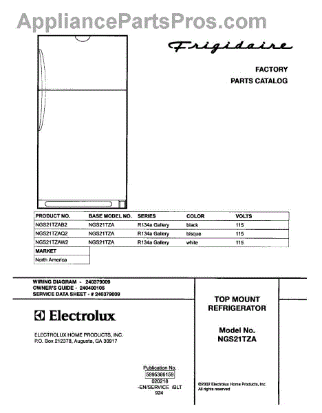 Parts for Frigidaire NGS21TZAB2: 01 - Cover Parts